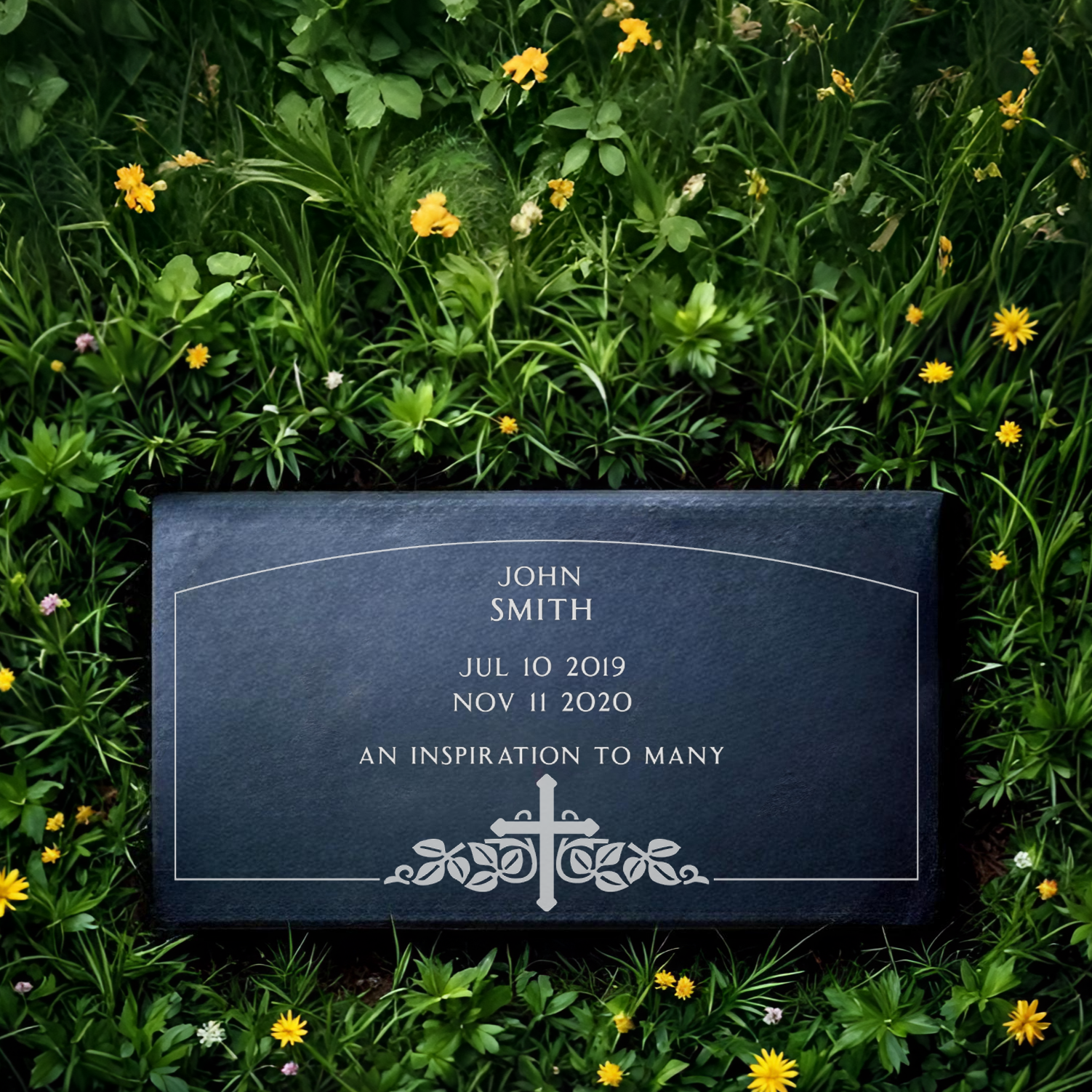 Crafted from premium black granite, this 24x12x3 inch flat headstone offers a lasting tribute to loved ones. Each marker is engraved using a deep sandblasting process — never laser etching — to create crisp, permanent lettering that endures harsh weather and the passage of time. Designed to meet most cemetery requirements for flat markers, it combines strength, elegance, and long-term durability.